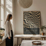 This Bauhaus-inspired Poster features a dynamic, flowing pattern that draws the eye with movement and rhythm. Abstract lines in beige and black create a sense of depth and energy while keeping the overall look clean and refined—minimalist elegance with a bold, modern pulse.