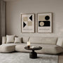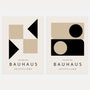 This Set of 2 Bauhaus beige and black posters pairs clean geometry with classic modernist minimalism. Strong black contrasts against subtle beige tones create wall art that feels both harmonious and dynamic, inspired by Bauhaus-era design and its focus on balance, structure, and timeless form.