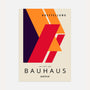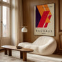 This Bauhaus-inspired Poster combines geometric precision with bold, expressive color. Intense reds, warm oranges, and deep purple tones create a sense of motion and spatial depth—minimal in form, yet full of energy and modern character. It’s a confident piece of wall art that balances clean structure with artistic impact.