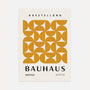 This Bauhaus-inspired Poster uses elegant golden, honey-like tones to express modernist harmony and order. Geometric forms repeat in a rhythmic pattern that feels calm and quietly hypnotic—minimal in detail, rich in atmosphere, and designed to bring balance to your walls.