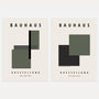 This Set of 2 Bauhaus posters is a contemporary take on modernist compositions, built from clean geometry and architectural structure. Squares, rectangles, and dynamic line intersections create a bold, ordered rhythm that feels precise yet artistic. Muted green paired with graphite adds depth and a refined modern tone, making the set both striking and easy to style.