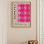 A Bauhaus-style poster featuring a dynamic pattern of pink dots, capturing rhythm, balance, and a bold modern aesthetic. The geometric composition in vivid pink tones brings energy and character to your space while keeping a clean, structured look. Perfect for living rooms, offices, and creative studios, this wall art adds a playful yet modern design statement. Printed as a premium high-gsm paper poster for deep colour, crisp detail, and long-lasting durability. Available as a framed poster or an unframed print.