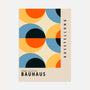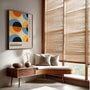 This Bauhaus-style poster draws inspiration from modernist design with a harmonious play of geometric forms and retro-inspired colors. Shades of orange, blue, yellow, and black come together in a rhythmic, balanced composition that evokes abstract symmetry and visual clarity. The clean structure proves how simple forms can create a strong, expressive impact.