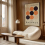This Bauhaus-inspired Poster captures modernist harmony through a rhythmic arrangement of perfect circles. Warm tones of beige, orange, and black create a balanced, elegant composition—minimal in form, rich in character, and designed to bring calm structure to your space.