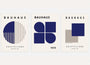 This Set of 3 wall art prints explores Bauhaus colour-and-form balance through clean geometry. Circles, half-circles, rectangles, and linear divisions create calm, modern compositions in deep navy and light beige.