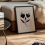 Black Flowers on Beige Poster is minimalist botanical wall art featuring a bold black floral silhouette on a warm beige background. The clean graphic form and calm palette create a timeless look that feels modern, refined, and easy to style. Ideal for Scandinavian and japandi interiors, it brings a quiet botanical accent without overpowering the room.