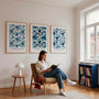Designed as a coordinated set of three, these botanical watercolor prints bring freshness and elegance to the interior. The cool blue palette creates a calm yet decorative accent, making the artwork suitable for both modern and timeless spaces.