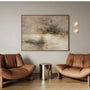 “Light Within Matter” is a framed canvas artwork that blends raw texture with a subtle, luminous presence. Warm beige and brown tones flow into cool grays, creating depth—like a quiet ray of light glowing from within the surface. Inspired by natural textures such as stone, plaster, and sand, it brings calm, balance, and a grounded, organic feel to the room.