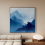 Bring the quiet power of nature into your space with the framed canvas print Blue Mountains. This watercolor-style landscape shows mist-covered peaks in cool shades of blue and deep navy, creating a refined sense of depth and calm. The minimal, airy composition adds freshness and modern elegance without feeling cold—perfect for japandi, minimalist, modern, and scandi interiors. Styled with light textures, natural wood, and soft neutrals, this framed canvas print becomes a serene focal point for a living room, bedroom, or workspace. Ready to hang, it invites a daily breath of stillness.