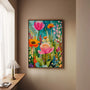 Bring a burst of summer light into your home with the framed canvas print “Floral Dance.” Vibrant pinks, warm oranges, and fresh greens create a harmonious nature symphony—like flowers moving gently in the rhythm of the breeze. The artwork radiates positive energy while staying elegant and refined, instantly brightening the room with a cheerful, uplifting mood.