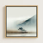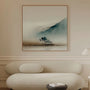 Feel the calm balance of nature with the framed canvas print “Morning Mist.” This minimalist landscape shows gentle mountains, trees, and a water reflection softened by a veil of mist. Cool blues, soft grays, and warm beige tones blend into a quiet scene that brings lightness, harmony, and stillness into your space.