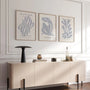 Display the posters as a cohesive triptych or hang them separately—each artwork holds its own compositional strength. Available as a framed poster or an unframed print, this collection suits modernist, minimalist, japandi, artistic, and loft interiors.