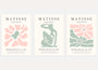 This Set of 3 wall art prints is inspired by Henri Matisse’s modernist forms, pairing abstract floral motifs with the iconic Nu Bleu silhouette in a calm green tone. Soft organic shapes and simplified lines create a gentle rhythm, while green and pink on a light neutral background keep the look fresh and balanced.
