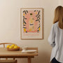 This fresh wall art print is inspired by the Italian coast, capturing the sunny spirit of limoncello with pastel tones, lemons, and olive branches. The central bottle adds an authentic Mediterranean touch, while the light, airy composition brings warmth and energy into kitchens, dining areas, cafés, or Italian-inspired interiors. Designed for lovers of southern flavours and relaxed summer aesthetics, this artwork looks perfect as a framed poster or as a refined unframed print, adding colour and effortless charm to your space.