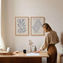 This set of two wall art prints is inspired by Henri Matisse’s celebrated cut-out approach, combining pastel light blue tones with fluid organic shapes. The soft forms bring visual lightness and create a calm, balanced atmosphere—minimal, artistic, and effortlessly modern.