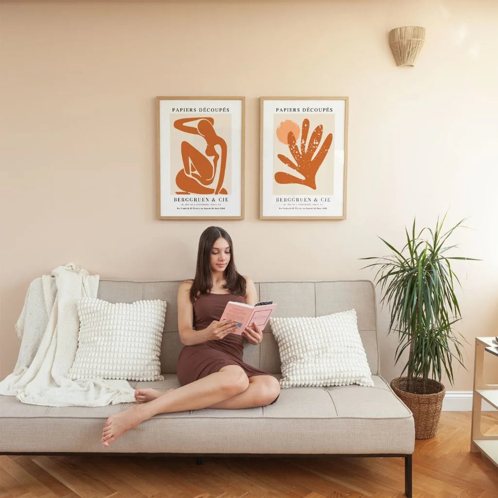 This set of two wall art prints is inspired by the iconic papiers découpés technique associated with Henri Matisse. Earthy brown tones and soft organic lines create warm, natural elegance with a modern, curated feel—simple, expressive, and beautifully balanced.