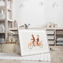 Monkeys on a Tandem Bike Poster is cheerful kids wall art featuring two adorable monkeys riding an orange tandem bicycle. The light watercolour style and warm, sunny tones create a friendly mood that brightens the room and brings an instant smile. Perfect for a nursery, child’s bedroom, play corner, or preschool, it complements Scandinavian, boho, and soft neutral interiors with ease.