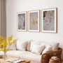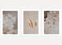 This set of three neutral botanical prints features delicate nature photography with dried flowers, grasses, and airy organic textures. Soft beige and cream tones create a light, calming atmosphere that feels timeless and effortlessly elegant.