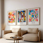 Together, the set creates a cohesive narrative of colour, structure, and emotion. Style it as a triptych or display each piece on its own. Available as a framed poster or an unframed print, it suits modern, mid-century, Scandinavian, artistic, and eclectic interiors—especially creative studios and design-led spaces.