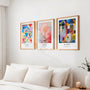 Together, the set forms a cohesive story of colour as emotion and structure. Hang it as a refined triptych or style each piece individually. Available as a framed poster or an unframed print, it fits modern, Scandinavian, boho, artistic, and eclectic interiors—perfect for creative rooms and design-led spaces.