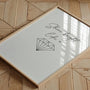 This minimalist wall art features the phrase “Shine bright like a” paired with a delicate geometric diamond illustration in black. Clean typography and fine line work create a modern, refined look that suits bedrooms, living rooms, dressing areas, offices, or a beauty corner.