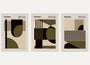 A balanced palette of green, olive, and beige, finished with deep dark accents, keeps the mood calm yet distinctive. Each print stands confidently on its own, while together they create a cohesive triptych for a refined statement wall. Display them as a framed poster set for a gallery-like presence, or choose each piece as an elegant unframed print for a lighter, minimalist finish. Ideal for modern living rooms, studies, creative studios, and architecture-led interiors inspired by 20th-century design.
