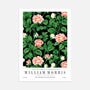 Inspired by William Morris and the Arts & Crafts tradition, this elegant wall art poster features lush pink flowers set against a deep, dark background. The strong colour contrast and classic, balanced composition create a decorative statement that feels refined, harmonious, and full of artistic depth.